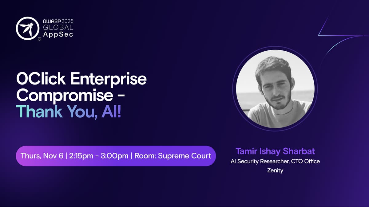 Hear from Zenity AI Security Researcher Tamir Sharbat at 2:15pm on Thursday, November 6 in the Supreme Court room.