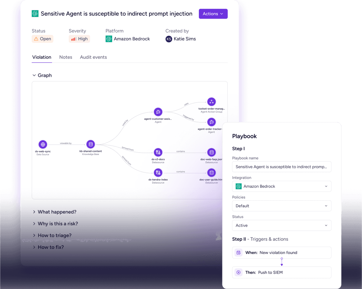 Zenity focuses on how your home-grown AI agents behave in real-world environments — not just how they’re configured. Whether built with AWS Bedrock, Azure AI Foundry, and Vertex AI, these agents operate autonomously across your environment. Zenity brings full-lifecycle governance by analyzing behavior in context, helping you uncover risks, enforce guardrails, and support secure innovation at scale.